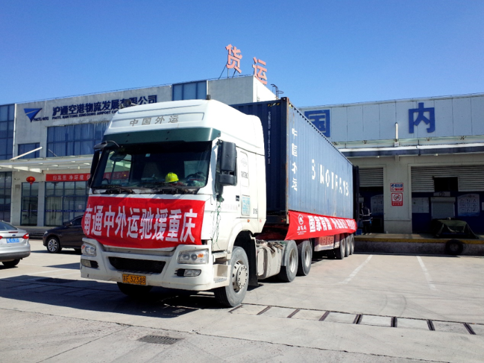 接重慶市相關單位委托后,中國外運在南通打破常規公路、鐵路運輸方式,與機場、航空公司共同努力,為疫情防控物資的緊急運輸開辟出一條優先保障出港的“綠色通道”。1月31日9時,總重約3噸的口罩生產原料打包一結束,立即裝上整裝待發的集卡車,11時運抵南通機場貨運區,這批物資將先發往深圳,再由深圳轉運至重慶,用于疫情防控物資的生產。