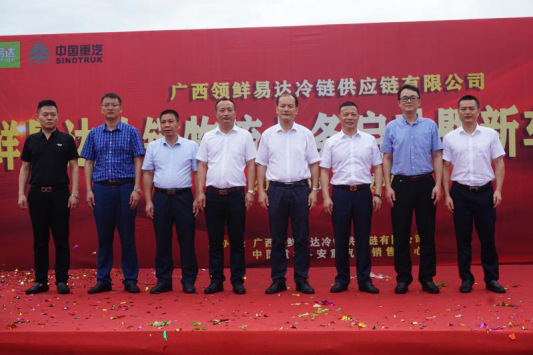 6月19日上午,廣西領鮮易達冷鏈供應鏈有限公司舉行冷鏈物流業務啟動暨中國重汽豪沃T7牽引車新車交接儀式,26臺嶄新的豪沃T7牽引車一字排開,氣勢恢宏。