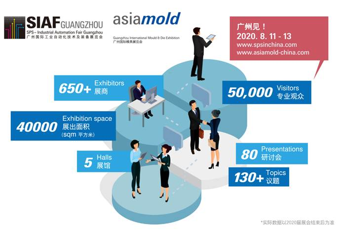 概要:2020年8月11至13日,SIAF廣州國際工業自動化技術及裝備展覽會及同期Asiamold廣州國際模具展覽會將在廣州中國進出口商品交易會展館盛大舉行。作為德國紐倫堡SPS智能生產解決方案展覽會的姊妹展,SIAF是華南地區智能工業自動化解決方案的重要平臺,而Asiamold則涵蓋了前沿的模具制造、3D打印、激光制造、壓鑄、軸承及金屬加工技術。兩展同屬智能制造領域,參展企業合計超過650家,展館的規模達40,000平方米,預計吸引超過50,000名專業觀眾前來參觀。展會現場將呈現超過130個議題, 分享工業自動化、模具制造和3D打印行業最新資訊,聚焦探討技術成果。