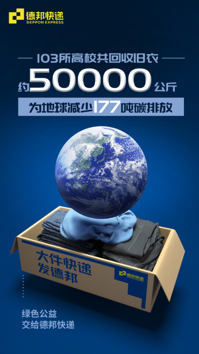 整個畢業(yè)季期間,共有103所高校參與“舊衣回收”挑戰(zhàn),回收超過30000件包裹,共計回收舊衣近50噸,相當于為地球減少碳排放177噸。德邦快遞也相應(yīng)地向民勤縣捐贈了超過10000平米的公益林。德邦快遞想告訴大家,“綠色公益,交給德邦快遞”,不止是說說而已。