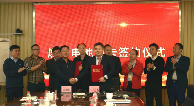 上汽紅巖副總經理、營銷公司總經理楊培強與圣圓能源董事長王少君現場簽約