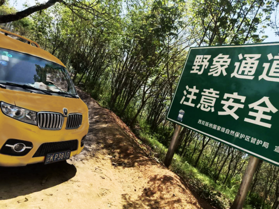 看著地面揚起團團塵埃,王興和安裝師傅屏住呼吸,停車熄火,靜靜等待著象群穿過公路。