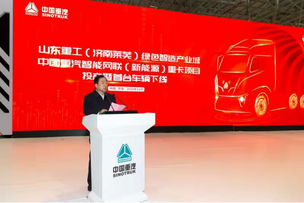 中國(guó)重汽智能網(wǎng)聯(lián)(新能源)重卡項(xiàng)目投產(chǎn)暨首臺(tái)車輛下線