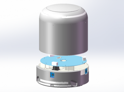 機器人外形為不規則圓柱形體,整機高度為50cm,直徑43cm,上設開蓋設計。機身貨倉容積21升,承重25kg。一份外賣午餐的重量一般不超過1.5kg,這款機器人的艙位和承重可以同時運送16份外賣。