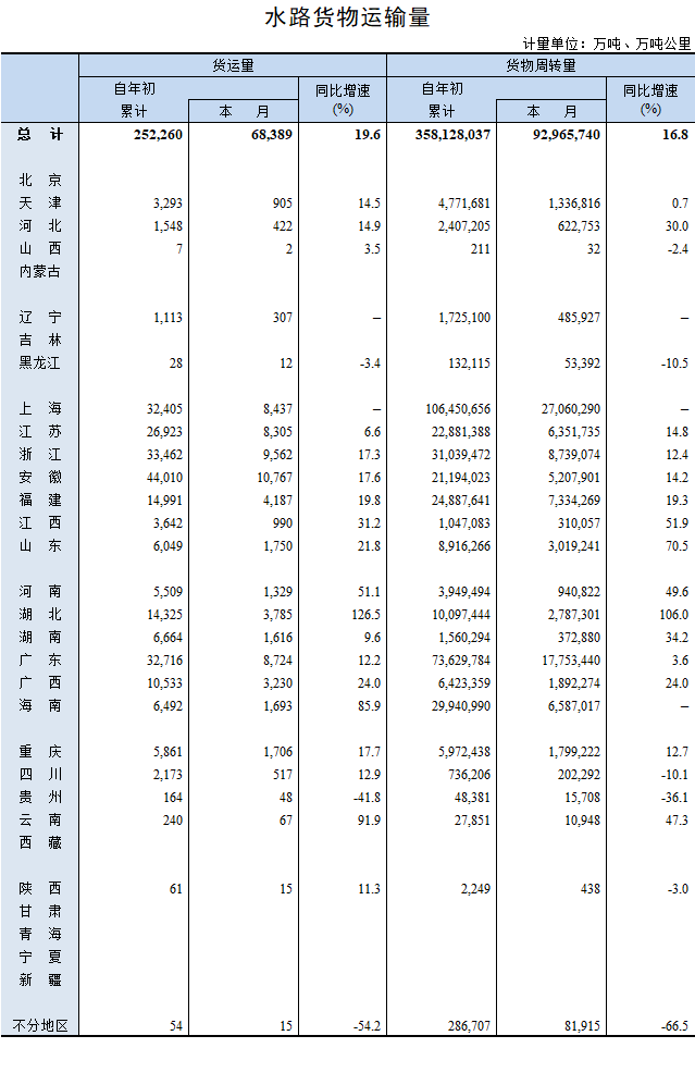 2021年4月水路貨物運輸量