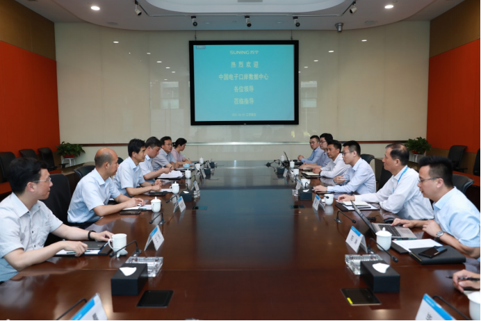 6月4日下午,海關總署中國電子口岸數據中心黨委書記高正太、技術部管理主任胡偉、副主任甄寶龍以及南京分中心主任仲躋生、副主任王浩等領導一行蒞臨蘇寧易購集團總部視察指導工作,蘇寧控股集團黨委常務副書記、蘇寧易購集團副總裁馬康帶隊出席活動共同舉行跨境電商業務座談會。