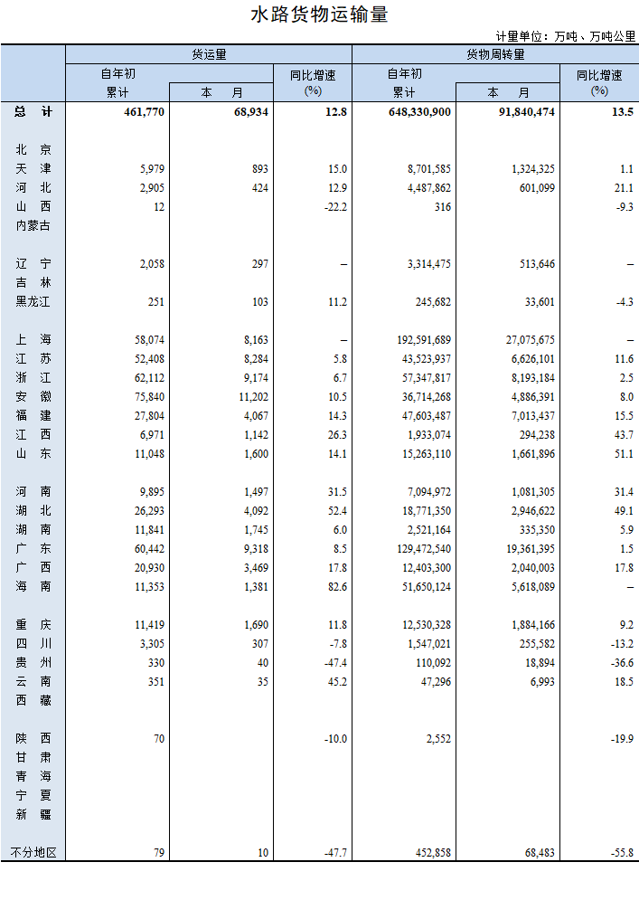 2021年7月水路貨物運輸量