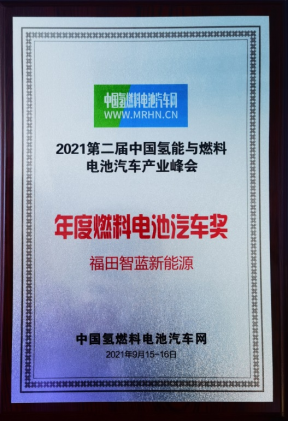 2021年9月15日,第二屆中國(guó)氫能與燃料電池汽車(chē)產(chǎn)業(yè)峰會(huì)上,福田智藍(lán)新能源榮獲2021年度氫燃料電池汽車(chē)品牌獎(jiǎng),這代表著行業(yè)內(nèi)對(duì)福田智藍(lán)新能源在氫燃料領(lǐng)域技術(shù)創(chuàng)新、產(chǎn)業(yè)鏈融合、產(chǎn)品商業(yè)化運(yùn)營(yíng)的高度認(rèn)可。