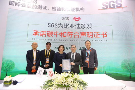 比亞迪獲頒國內首張SGS承諾碳中和符合聲明證書