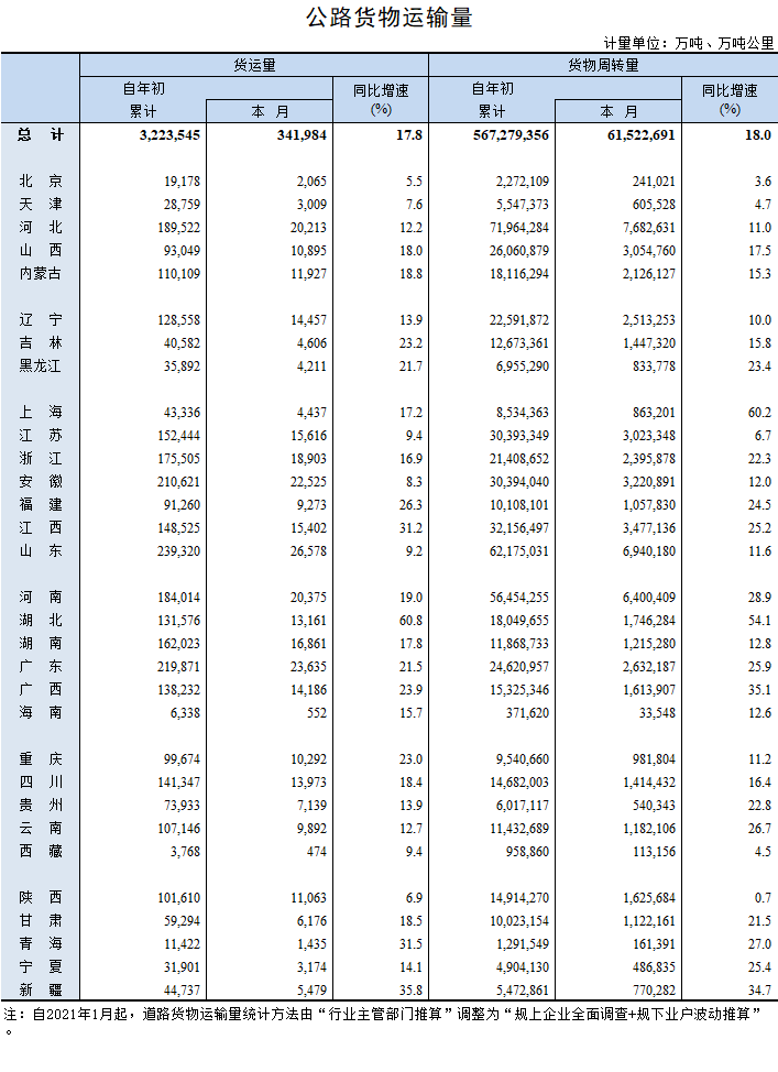 2021年10月公路貨物運輸量
