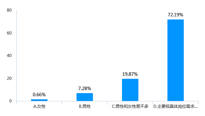 物流行業作為勞動密集型的服務業,不同崗位工作內容差別較大,由此決定男女從業者不同的職業發展路徑。這也決定了,物流企業在決定男女員工晉升時,更多的會考慮到具體崗位的性質。調查顯示,在決定人員晉升時,有72.19%的企業會視具體崗位需求而傾向男女性別因素(見圖11)。