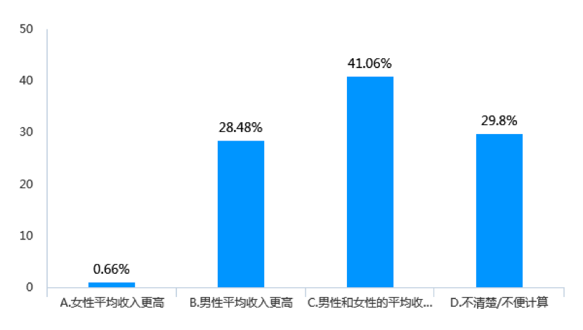 結合兩方面情況可以看出,在受調查企業中,男女員工的平均收入水平差不多的企業數量,明顯少于男女工作績效差不多的企業數量。由此說明,在同等績效下,男女從業者呈現出薪酬待遇不完全平等的現象。