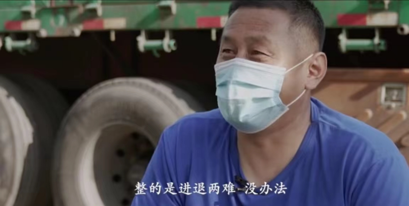 “沒有核酸,我們寸步難行”、“現在只要溫飽肚子就成,不能要求太高”、“想家,但回家又怕影響小孩上學,真的的是進退兩難。”在紀錄短片《看見》中,貨車司機們面對鏡頭講述了疫情之下“被困住”的窘境。