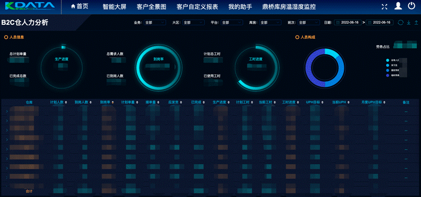科捷自主研發的供應鏈大數據應用平臺KingKooData,在用工管理系統上再次升級,充分支持大促模式。通過對多年積累的倉內用工大數據進行分析挖掘,可提供倉內人員管理優化策略,進行精準排班和人員調度。同時,通過人員的預注冊,達成上崗效率的提升和倉內運作的精細化管理。讓科捷倉內復核效率提升5倍,出庫效率增長150%。
