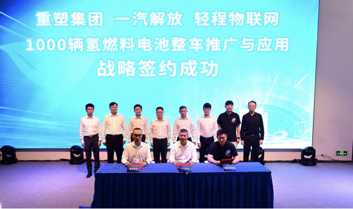 在順利交車的基礎(chǔ)上,三方就深化氫燃料電池在商用車方面的應(yīng)用和市場推廣達(dá)成進(jìn)一步合作意向。一汽解放新能源事業(yè)部副總經(jīng)理李玉峰、胡哲、劉可飛作為三方代表,簽署了“一汽解放&重塑集團(tuán)&輕程物聯(lián)網(wǎng)1000輛氫燃料電池整車推廣與應(yīng)用戰(zhàn)略”協(xié)議。該協(xié)議的成功簽署,象征著三方在未來將強(qiáng)強(qiáng)聯(lián)合、攜手并進(jìn),共同推動新能源商用車產(chǎn)業(yè)長期、穩(wěn)定和可持續(xù)發(fā)展,加快推進(jìn)燃料電池商用車項目落地,為我國“雙碳”目標(biāo)的達(dá)成和實現(xiàn)中國汽車產(chǎn)業(yè)可持續(xù)發(fā)展貢獻(xiàn)力量。