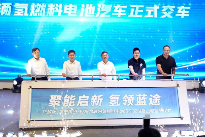 8月16日,以“聚能啟新 氫領(lǐng)藍(lán)途”為主題的一汽解放&重塑集團(tuán)&輕程物聯(lián)網(wǎng)氫燃料電池汽車交付暨戰(zhàn)略簽約儀式在上海隆重召開。上海市嘉定區(qū)副區(qū)長李峰,一汽解放總經(jīng)理、黨委副書記吳碧磊、黨委副書記、工會主席張國華,重塑集團(tuán)董事長兼總裁林琦、首席運營官胡哲,輕程物聯(lián)網(wǎng)總經(jīng)理劉可飛,中石化氫能源(上海)總經(jīng)理劉可成出席本次活動。上海嘉定區(qū)、一汽解放、重塑集團(tuán)等相關(guān)領(lǐng)導(dǎo)、合作伙伴、員工代表以及來自全國的媒體記者共同見證了交付、簽約的重要時刻。