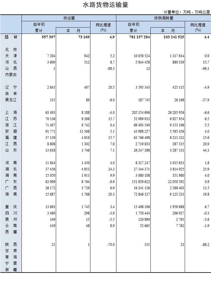 2022年8月水路貨物運輸量