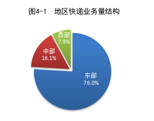 1-2月,東、中、西部地區(qū)快遞業(yè)務(wù)量比重分別為76.0%、16.1%和7.9%,業(yè)務(wù)收入比重分別為75.9%、14.2%和9.9%。與去年同期相比,東部地區(qū)快遞業(yè)務(wù)量比重下降1.7個(gè)百分點(diǎn),快遞業(yè)務(wù)收入比重下降1.3個(gè)百分點(diǎn);中部地區(qū)快遞業(yè)務(wù)量比重上升0.9個(gè)百分點(diǎn),快遞業(yè)務(wù)收入比重上升0.6個(gè)百分點(diǎn);西部地區(qū)快遞業(yè)務(wù)量比重上升0.8個(gè)百分點(diǎn),快遞業(yè)務(wù)收入比重上升0.7個(gè)百分點(diǎn)。