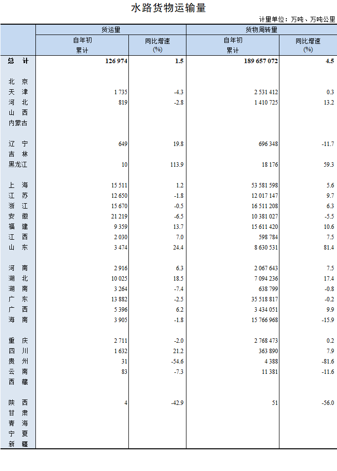 2023年1-2月水路貨物運輸量