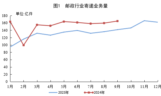 9月份,郵政行業寄遞業務量完成165.0億件,同比增長16.6%。其中,快遞業務量完成149.7億件,同比增長18.7%。
