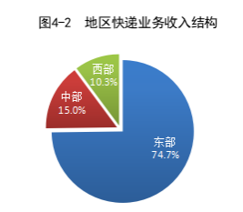 1-9月,東、中、西部地區快遞業務量比重分別為72.6%、18.6%和8.8%,業務收入比重分別為74.7%、15.0%和10.3%。與去年同期相比,東部地區快遞業務量比重下降2.2個百分點,快遞業務收入比重下降1.2個百分點;中部地區快遞業務量比重上升1.3個百分點,快遞業務收入比重上升0.7個百分點;西部地區快遞業務量比重上升0.9個百分點,快遞業務收入比重上升0.5個百分點。