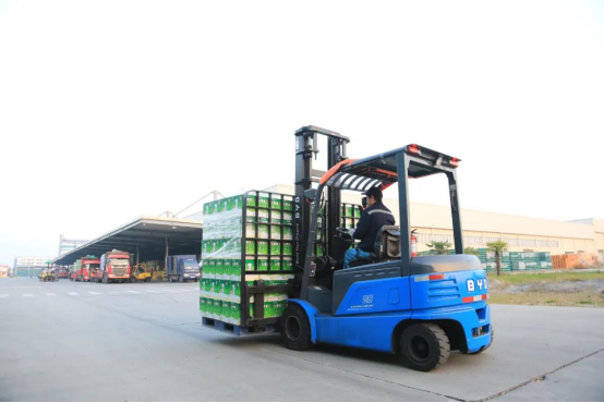 該企業(yè)構(gòu)建了一個(gè)環(huán)保供應(yīng)鏈,他們鼓勵(lì)供應(yīng)商回收和再利用包裝材料,并積極推廣使用綠色物流配送工具,目的是其在生產(chǎn)和運(yùn)輸過程中減少固體廢物的產(chǎn)生。在該企業(yè)建立的智能化食品飲料生產(chǎn)基地中,運(yùn)用的正是比亞迪鋰電叉車。
