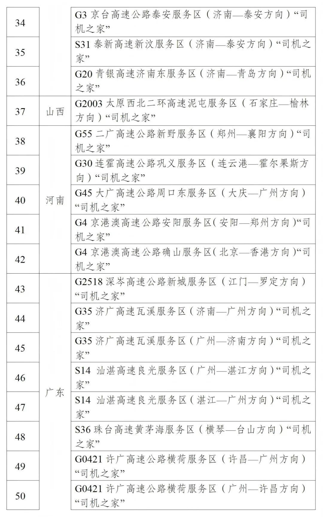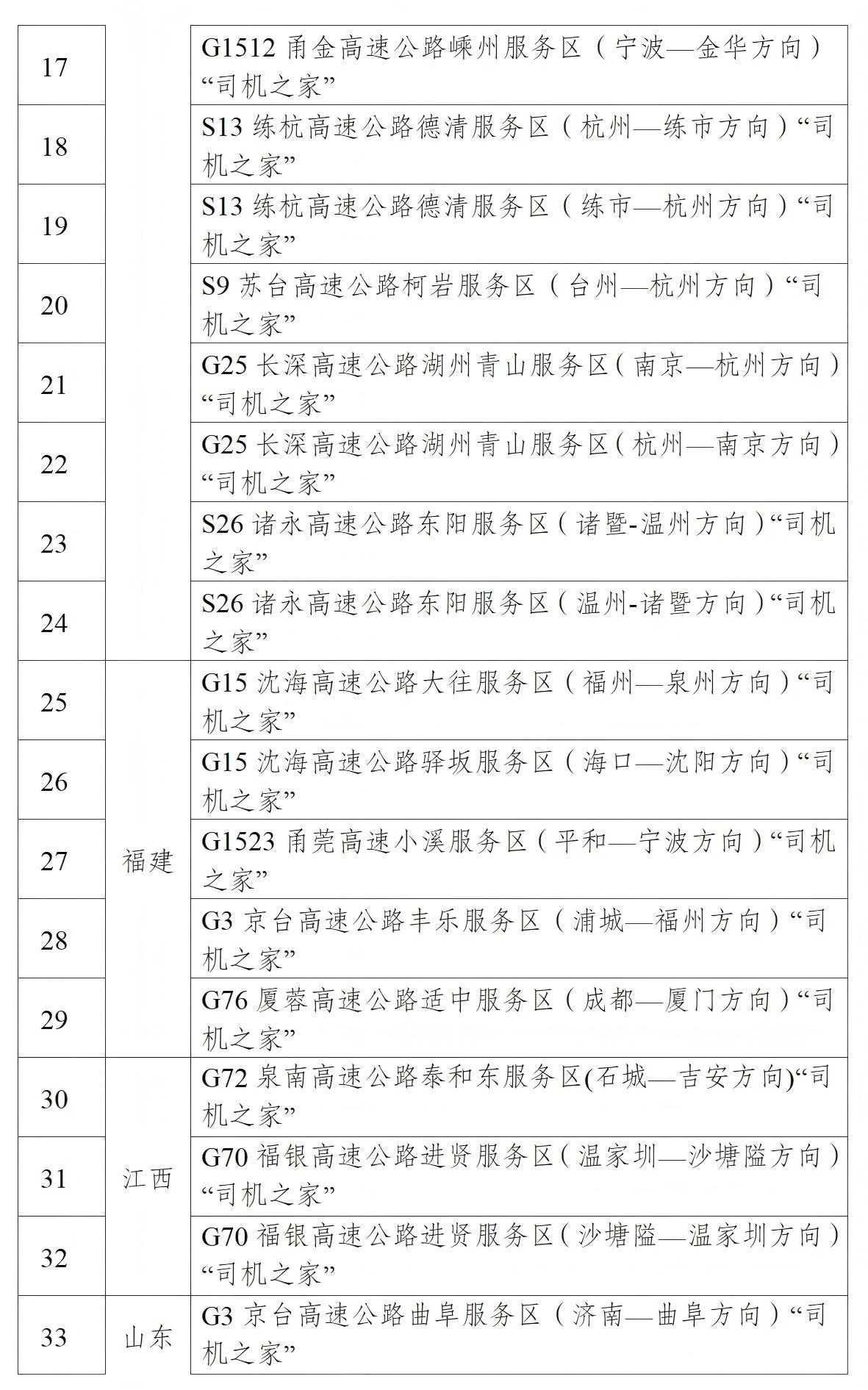 為進一步改善貨車司機停車休息環境,交通運輸部、中華全國總工會聯合印發通知,部署各地開展高速公路服務區“司機之家”標準化規范化提升行動。目前,已有100個高速公路服務區“司機之家”(名單如下)完成改造提升,為貨車司機提供停車休息、熱水供應、飯菜加熱、淋浴、洗衣等免費基本服務和可選擇的個性化服務。