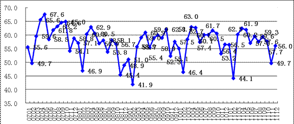 2011年12月份中國物流與采購聯合會發布中國非制造業商務活動指數為56.0%
