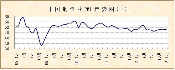 中國(guó)物流與采購(gòu)聯(lián)合會(huì)、國(guó)家統(tǒng)計(jì)局服務(wù)業(yè)調(diào)查中心發(fā)布的2013年1月份中國(guó)制造業(yè)PMI為50.4%,比上月回落0.2個(gè)百分點(diǎn)。該指數(shù)連續(xù)四個(gè)月保持在50%以上,走勢(shì)基本平穩(wěn)。本月新訂單指數(shù)上升,需求基礎(chǔ)進(jìn)一步鞏固,供需關(guān)系有所改善;原材料庫(kù)存指數(shù)上升,反映企業(yè)信心增強(qiáng)。總體來看,經(jīng)濟(jì)運(yùn)行保持穩(wěn)健,開局良好。