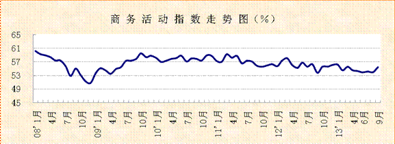 中國物流與采購聯合會、國家統計局服務業調查中心發布的2013年9月份中國非制造業商務活動指數55.4%,環比上升1.5個百分點,創出自今年4月以來的新高。此外,新訂單指數連續兩個月回升,且本月升幅有所擴大,達到53.4%,創出自今年2月以來的新高。非制造業經營活動和市場需求雙雙回升,且指數水平均高于今年以來的歷史平均水平,顯示當前非制造業經濟表現活躍。
