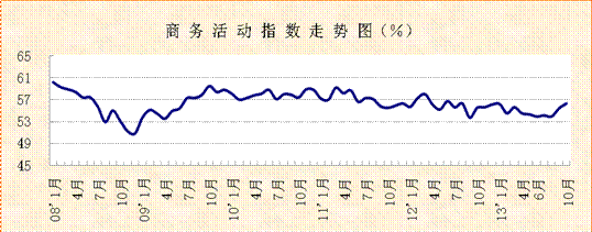 中國物流與采購聯(lián)合會、國家統(tǒng)計局服務(wù)業(yè)調(diào)查中心發(fā)布的2013年10月份中國非制造業(yè)商務(wù)活動指數(shù)連續(xù)兩個月回升,環(huán)比上升0.9個百分點,達到56.3%,創(chuàng)出年內(nèi)新高。此外,新訂單指數(shù)雖有回調(diào),但仍保持在51.6%的穩(wěn)定水平。從業(yè)人員指數(shù)環(huán)比上升0.2個百分點,連續(xù)七個月穩(wěn)定運行在51%以上。業(yè)務(wù)活動預(yù)期指數(shù)環(huán)比上升0.5個百分點,達到60.5%。綜合數(shù)據(jù)表現(xiàn),當前非制造業(yè)經(jīng)濟延續(xù)穩(wěn)定向好趨勢。