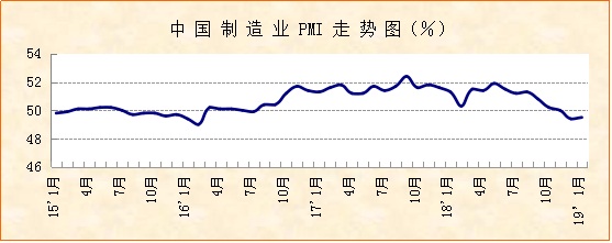 中國(guó)物流與采購聯(lián)合會(huì)、國(guó)家統(tǒng)計(jì)局服務(wù)業(yè)調(diào)查中心發(fā)布的2019年1月份中國(guó)制造業(yè)采購經(jīng)理指數(shù)(PMI)為49.5%,較上月回升0.1個(gè)百分點(diǎn)。從分項(xiàng)指數(shù)來看,多數(shù)指數(shù)穩(wěn)中有升,顯示供需增速相對(duì)穩(wěn)定,產(chǎn)成品庫存繼續(xù)減少,價(jià)格下降勢(shì)頭趨緩,經(jīng)濟(jì)運(yùn)行呈趨穩(wěn)跡象。