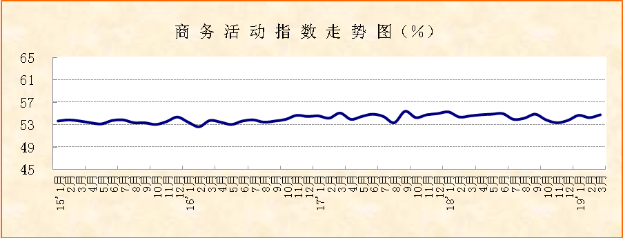 中國(guó)物流與采購(gòu)聯(lián)合會(huì)、國(guó)家統(tǒng)計(jì)局服務(wù)業(yè)調(diào)查中心發(fā)布的2019年3月份中國(guó)非制造業(yè)商務(wù)活動(dòng)指數(shù)為54.8%,連續(xù)三個(gè)月運(yùn)行在54%以上,較上月和去年同期分別上升0.5和0.2個(gè)百分點(diǎn);新訂單指數(shù)為52.5%,較上月和去年同期分別上升1.8和2.4個(gè)百分點(diǎn)。綜合指數(shù)變化,市場(chǎng)供需趨升,非制造業(yè)活動(dòng)穩(wěn)中趨升,特別是市場(chǎng)需求明顯改善,為經(jīng)濟(jì)保持平穩(wěn)運(yùn)行奠定堅(jiān)實(shí)基礎(chǔ)。